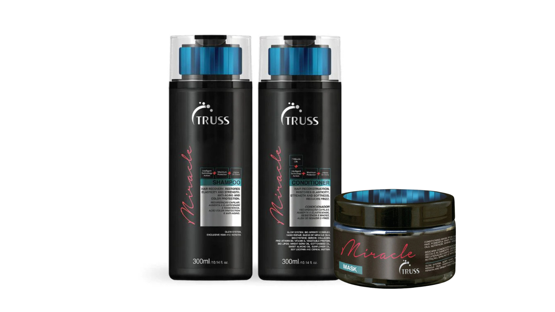 O Truss Miracle Shampoo foi pensado para cabelos danificados devido a tratamentos químicos ou agressões externas. A sua fórmula com Queratina reconstrói a fibra capilar e protege os fios para evitar novos danos. Também aumenta a resistência do cabelo, retém a humidade e aumenta a hidratação e a nutrição dos fios. O seu cabelo fica mais elástico, brilhante e com um toque suave.